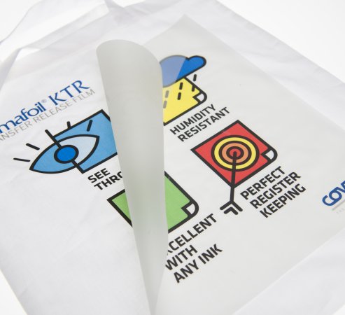 The KTR® line for Plastisol transfer inks includes heat transfer films for gloss or matt finishing , one or two sides printable and with cold or hot peel-off option. There are both sides release coated versions or one side release coated and the other side with an antistatic or antiblocking treatment.
